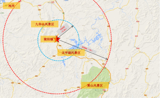 陵阳镇距离九华机场车程1小时27分钟,距离黄山机场车程1小时40分钟,随时可以一场说走就走的旅程。