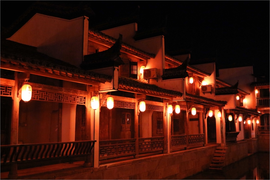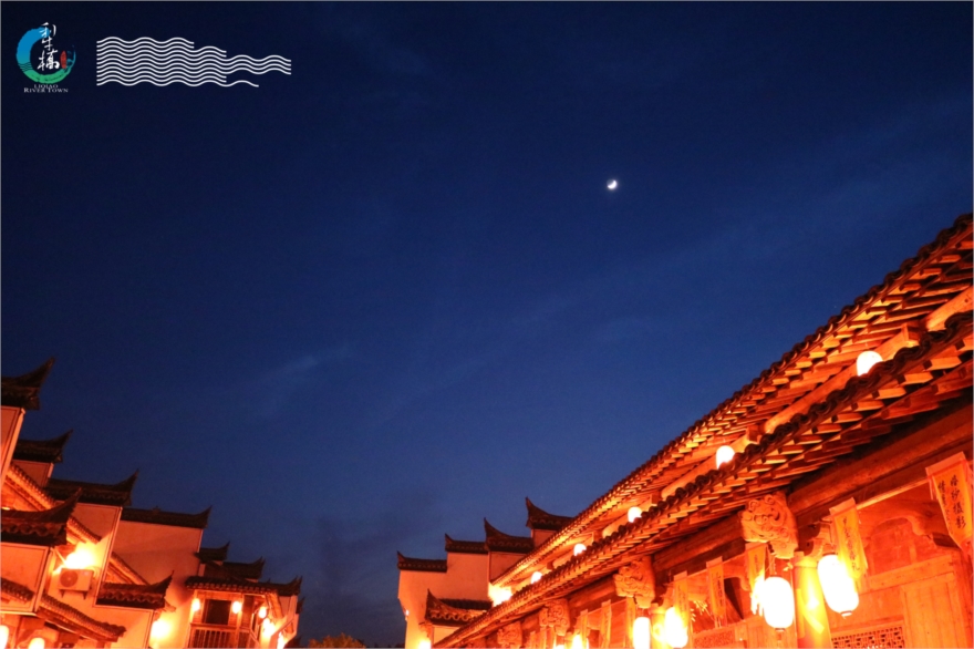 犁桥水镇主动降噪,避开高考时段,践行文明旅游。在初夏的夜色中,古镇灯火辉煌,水波映月,夜景美不胜收。