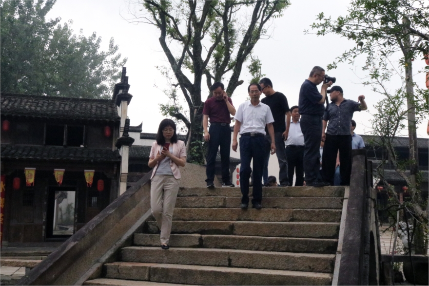 王云波一行实地调研犁桥水镇景区建设情况并听取相关工作汇报。对犁桥水镇景区在徽派建筑文化的保护传承工作所做出的努力和成就给予高度充分肯定,并就犁桥水镇后期建设、以及建筑与传统文化的融合提出了许多宝贵的建设性意见,要求犁桥水镇深度挖掘文化内涵,将景区与民俗、农耕、非遗文化相结合,实现文化旅游融合发展。细心谋划,着力完善旅游服务设施和功能,科学合理地推进景区的各项工作。