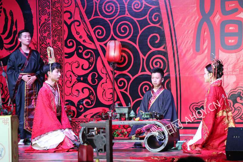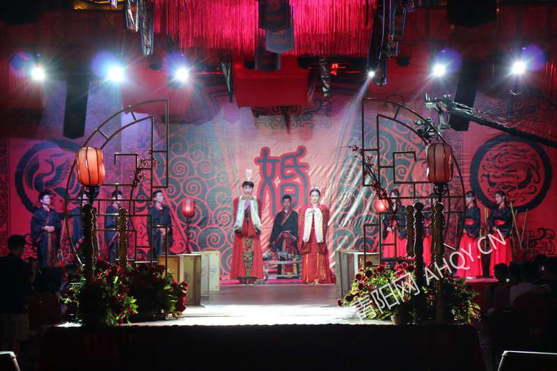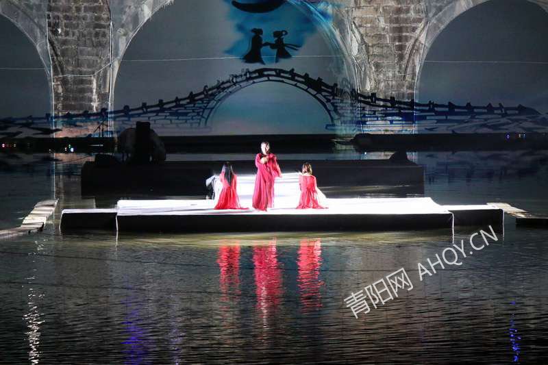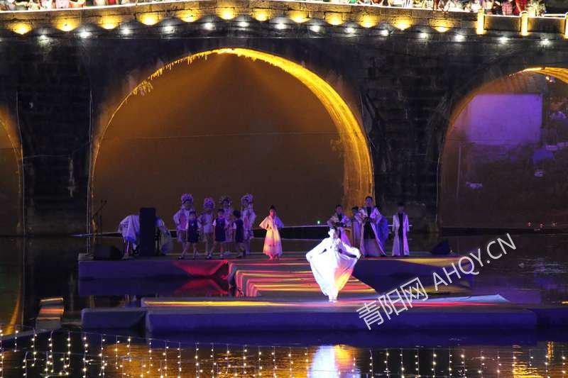 在天下粮仓大酒店会场内,七夕成人礼、传统婚俗情景剧表演、交友活动、时光照相馆、七夕许愿墙等一系列多姿多彩的七夕节传统文化活动正在展开。而在南流河沿岸会场如梦如幻的全息投影,热闹纷呈的乐队表演、水上T台秀、歌舞秀,现代化的表演正融入陵阳这座古老而又神秘的小镇,传统与时尚巧妙地连在一起。