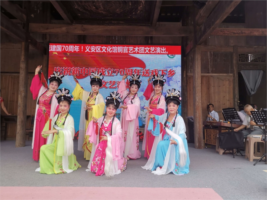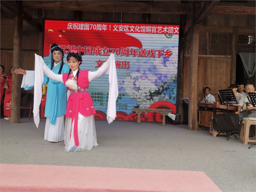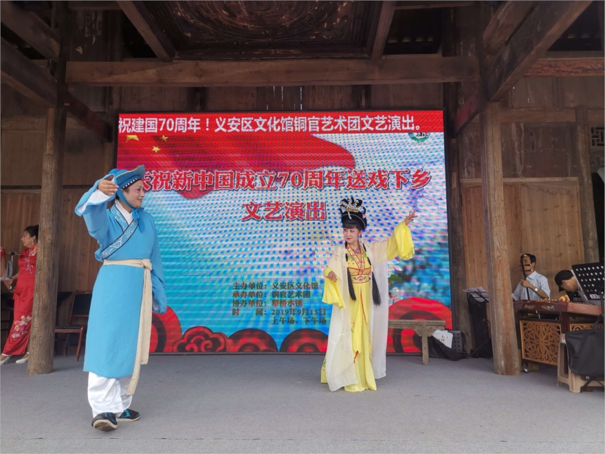 挂灯笼,迎中秋。月朗风清,佳节期间,广大游客纷纷前来犁桥水镇一品人间真情。9月15日,由义安区文化馆主办,铜官艺术团承办的“庆祝新中国成立70周年”送戏下乡文艺演出在犁桥水镇欢乐开场。