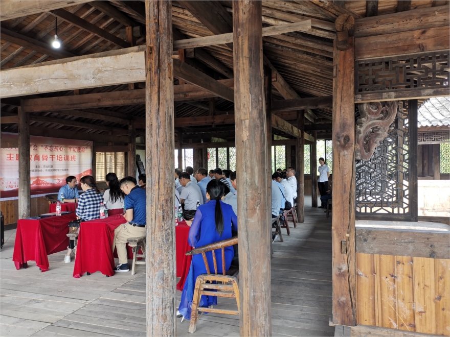 为隆重庆祝中华人民共和国成立70周年,9月25日,由铜陵市社科类学会主办的“不忘初心、牢记使命”主题教育骨干培训班在犁桥水镇百柱堂开讲。此次活动由市收藏夹协会及漫园博物馆社科基地协办。市社科联党组成员、副主席徐达佩就开展“不忘初心、牢记使命”主题教育进行了宣讲,市纪委“三个以案”警示教育宣讲团成员、市传统文化交流协会会长刘群作了《实施“传育立行”教育工程共建铜陵美丽幸福家园》的专题讲座。