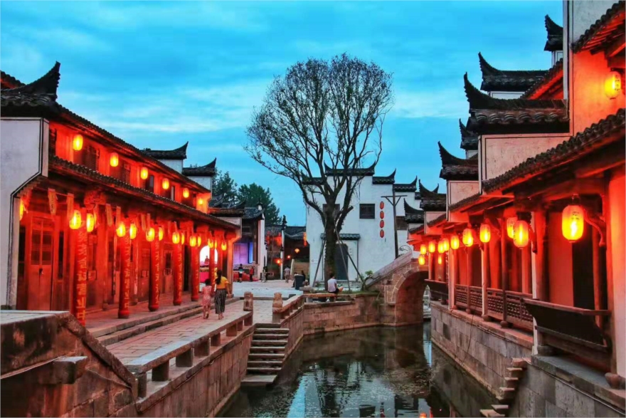 灯火璀璨的犁桥水镇街景