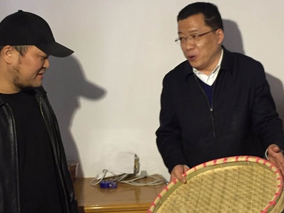 公司董事长朱国正介绍非遗项目竹编工艺,丁书记认真询问了解。