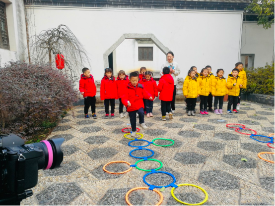 拿好接力棒,观察地上的圈圈,分清是用单脚还是双脚呢~~~