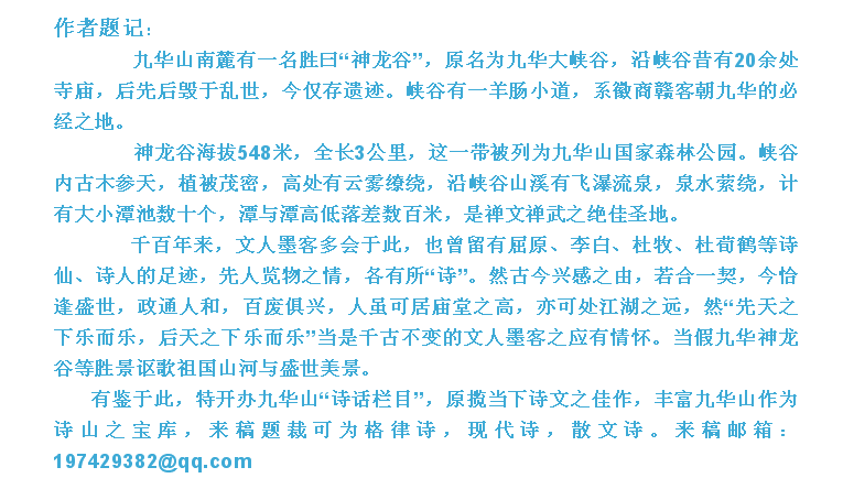 “神龙谷诗话”欣赏,欢迎您的来稿
